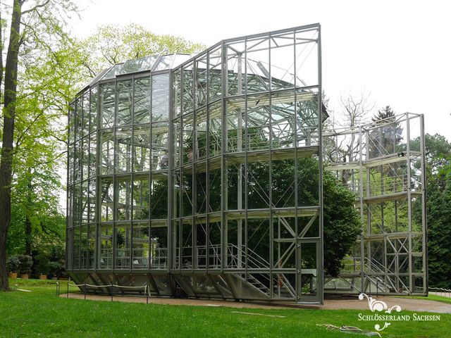 Alle Kamelien- und Technikfans aufgepasst! Die Kamelie im Pillnitzer Schlosspark bezieht wieder ihren gläsernen Winterschutz, in dem sie bis Mitte Mai vor den kalten Temperaturen geschützt wird. Auf fest verlegten Schienen gelagert, wird das 54 Tonnen schwere und über 13 Meter hohe Glashaus über die Kamelie geschoben.